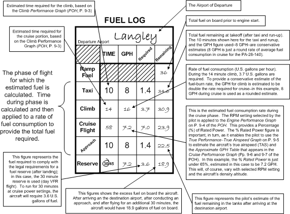 The third page provides for airport sketches—information that can be readily referred to during the flight.13 The third page also provides for a summary of fuel requirements—fuel, of course, being the primary limited resource that governs any flight.