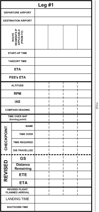 Finally, for each leg, the summary provides space to organize information for checkpoint calculations and ETA updating.