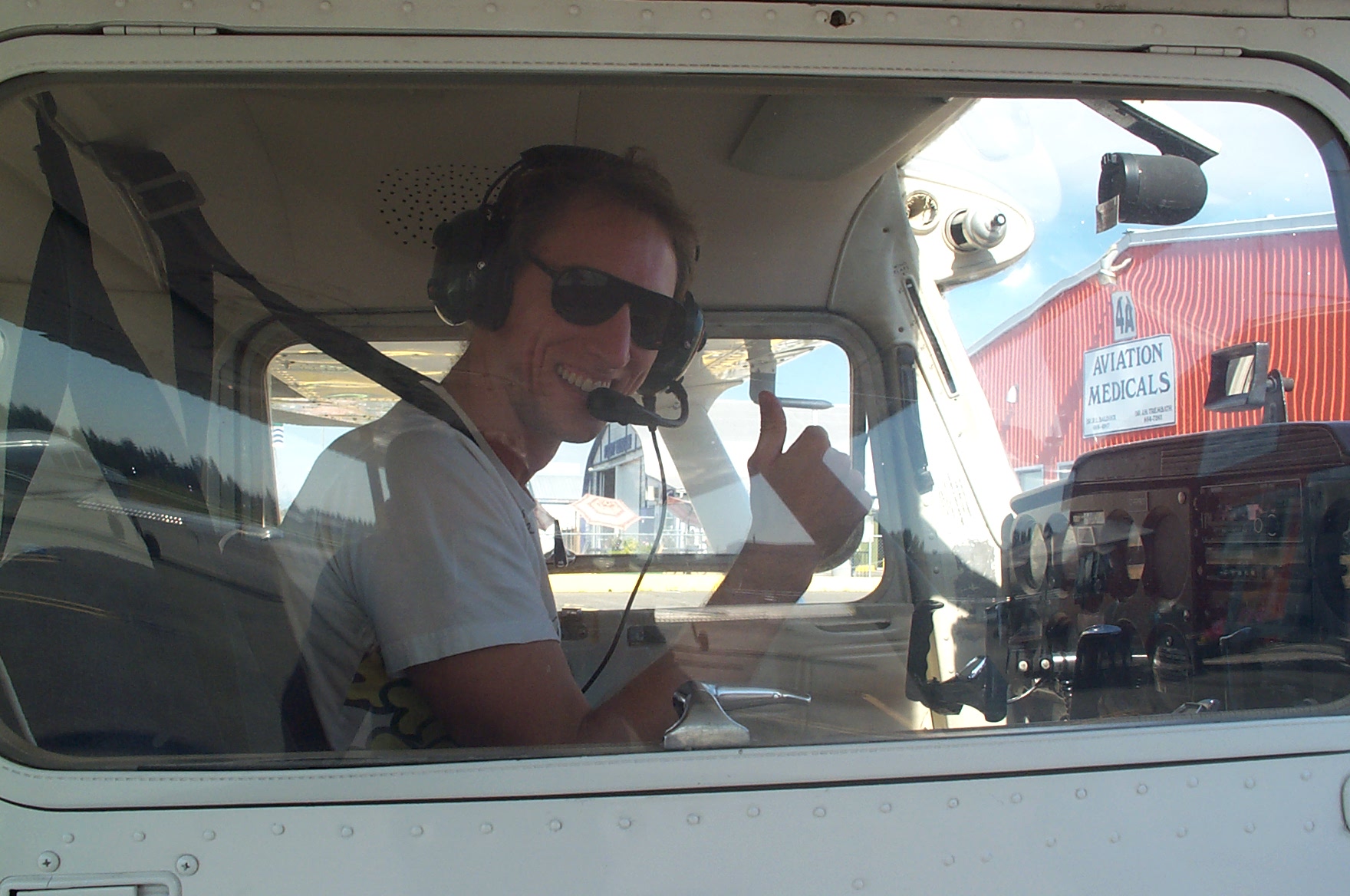 Alex Close in the cockpit of Cessna FPRT after completing his First Solo Flight on July 27, 2010. Congratulations also to Alex's Flight Instructor, Nam Vu.