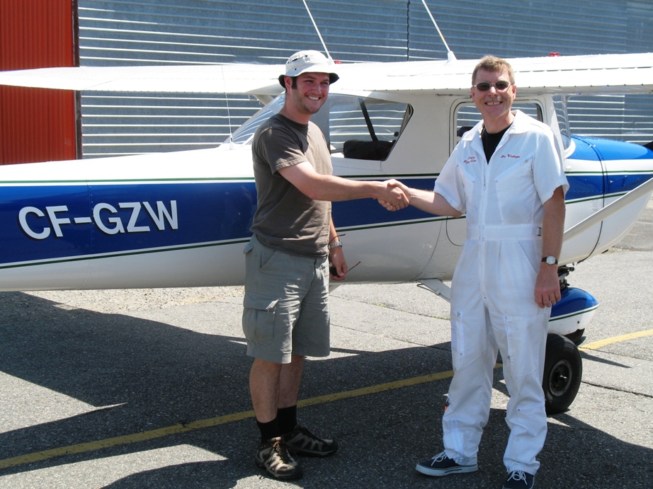Congratulations to Andrew Sayle who completed his First Solo Flight in Cessna C-FGZW on July 3, 2009, 2009. Congratulations also to Andrew's Flight Instructor, Peter Waddington .