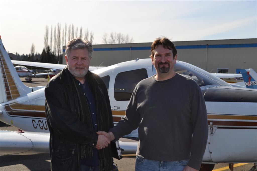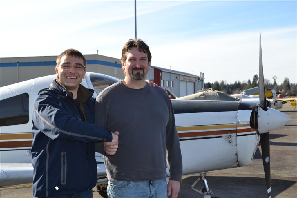 Bob Recknagel with his Flight Instructor, Beda Grunder following the successfuly completion of his Private Pilot Flight Test on February 20, 2010 .