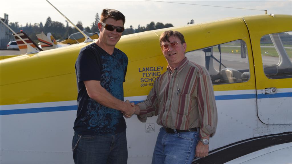 Darryl (Mark) Reid with Pilot Examiner John Laing after the successful completion of his Private Pilot Flight Test on October 19, 2011.