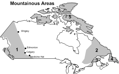 There are five Mountainous Areas in Canada as depicted above. They are specifically defined in the Designated Airspace Handbook.